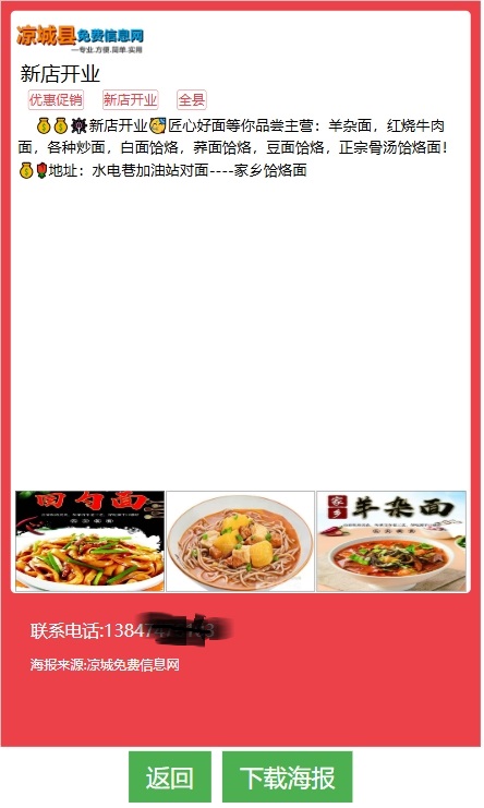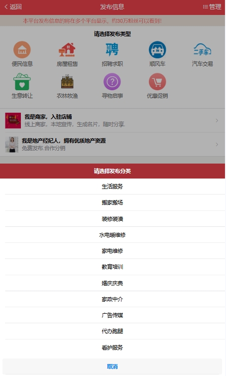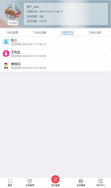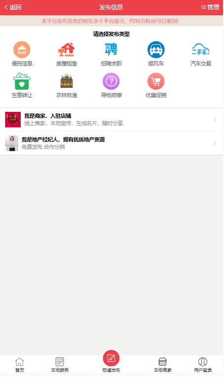 - 本地信息:发布、查看本地生活供需信息。生成名片