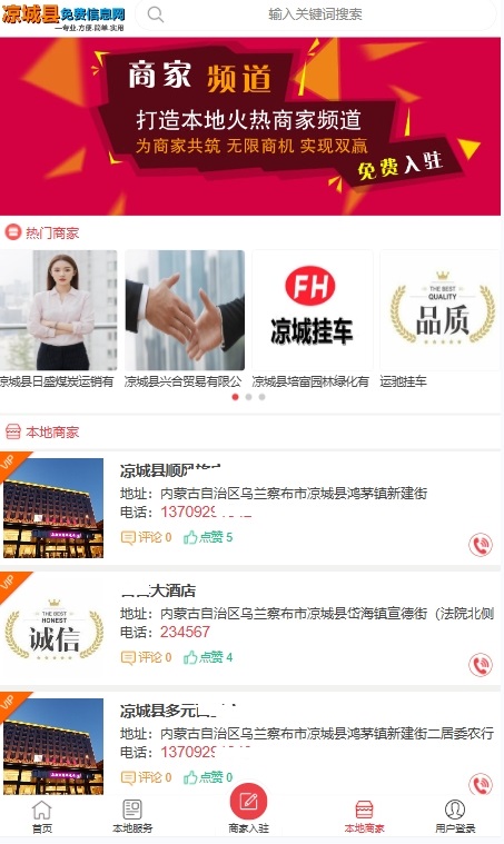 3.本地商家:系统提供本地商家入驻功能,生成商成名片。
